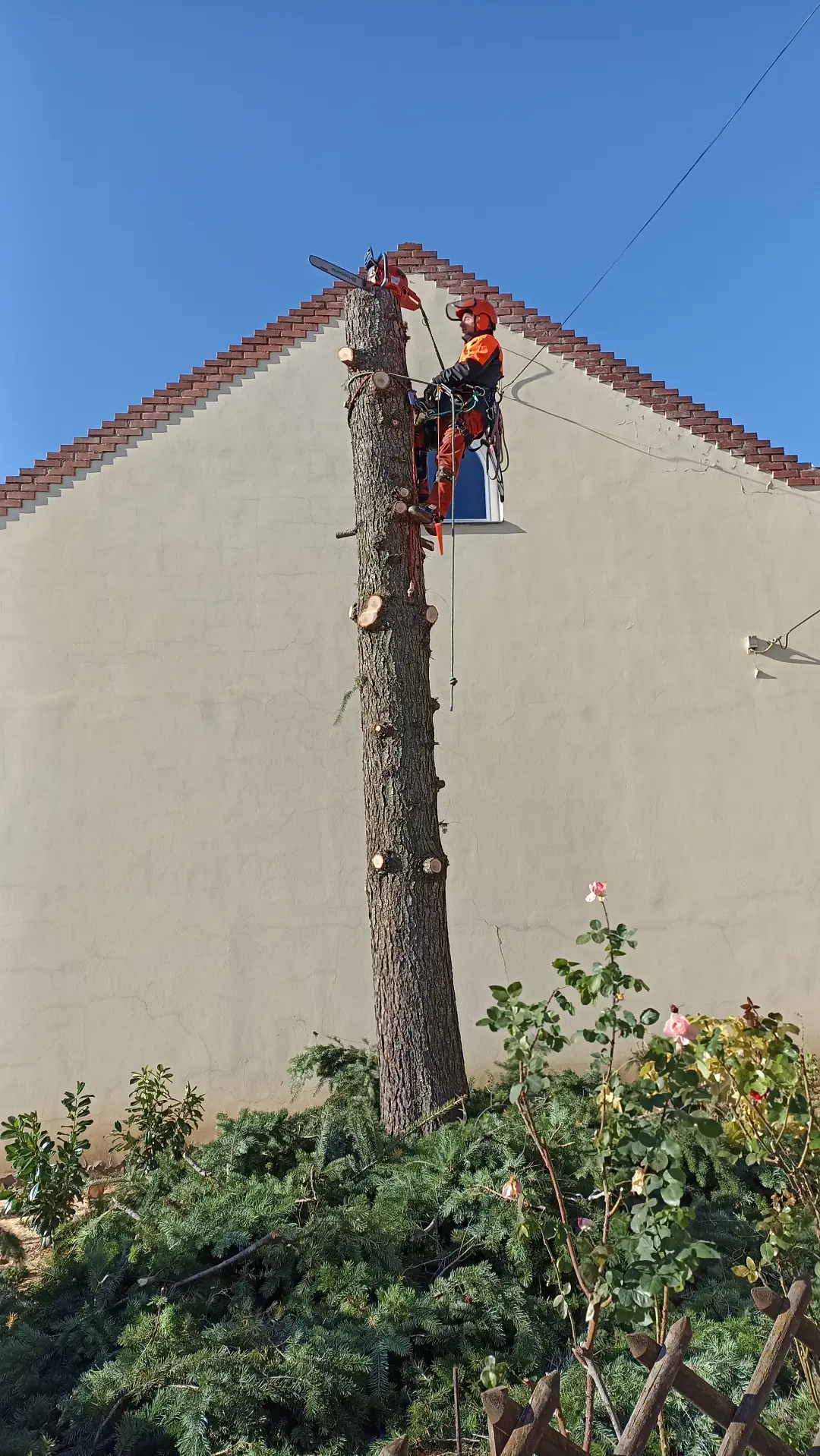 A képeken látható többek között veszélyes fák kivágása alpintechnikával-és emelőkosaras jármű segítségével, gallyazás, zöldhulladék szállítás…